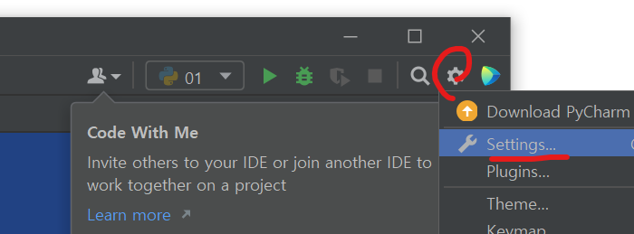 설정 - 파이썬 프로젝트 - 인터프리터 설정 - 메타