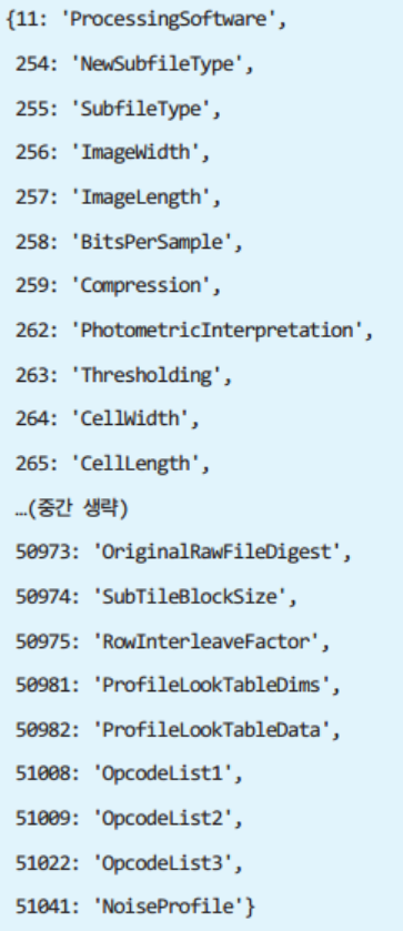 PIL 모듈은 ExifTags라는 사전이 있다. 확인해보기