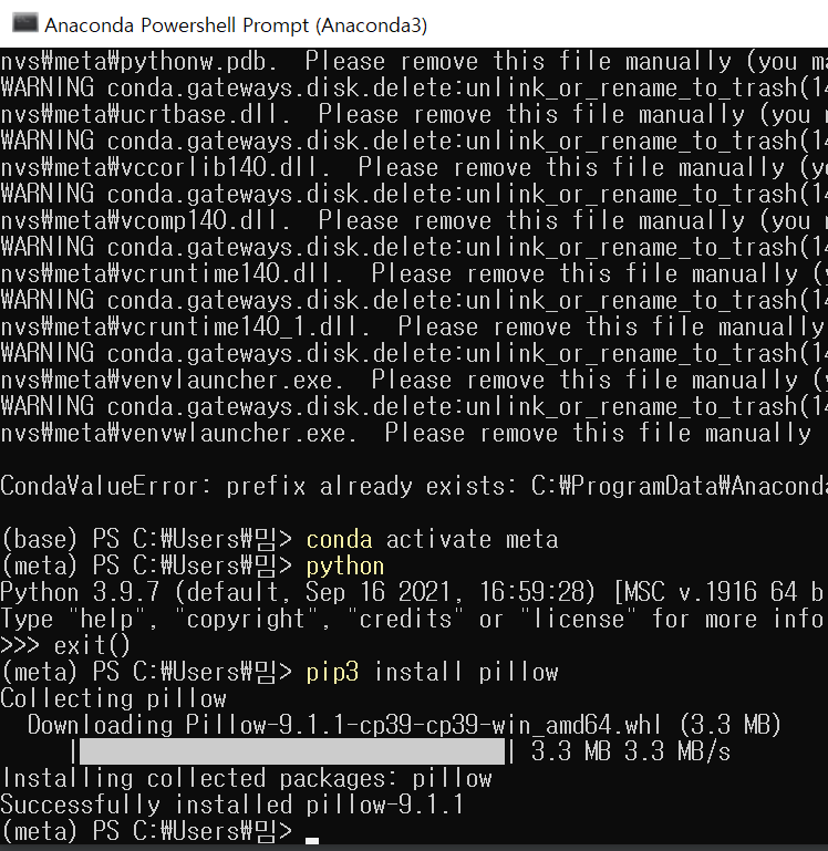 4. PIL 없어서 오류 뜬다 설치 : 아나콘다 프롬트에서