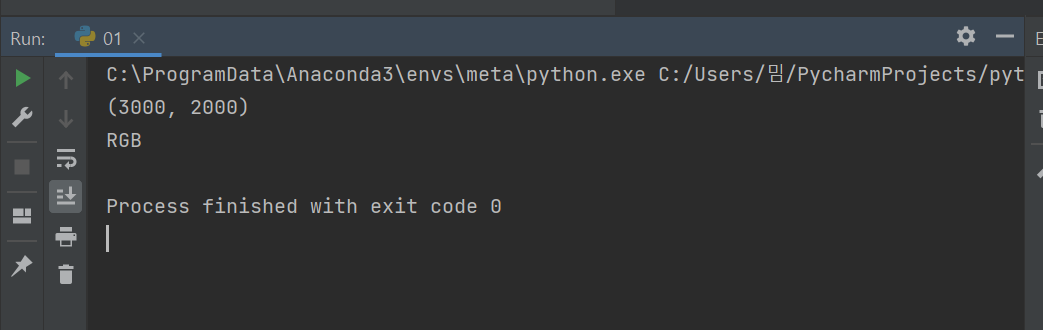 출력 값 확인한다. 이미지 사이즈와 이미지 컬러 모드