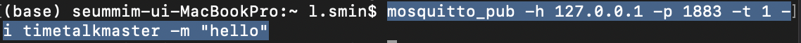 js-MacBookPro:~ js.k$ mosquitto_pub -h localhost -p 1883 -t topic -m "Hello message"