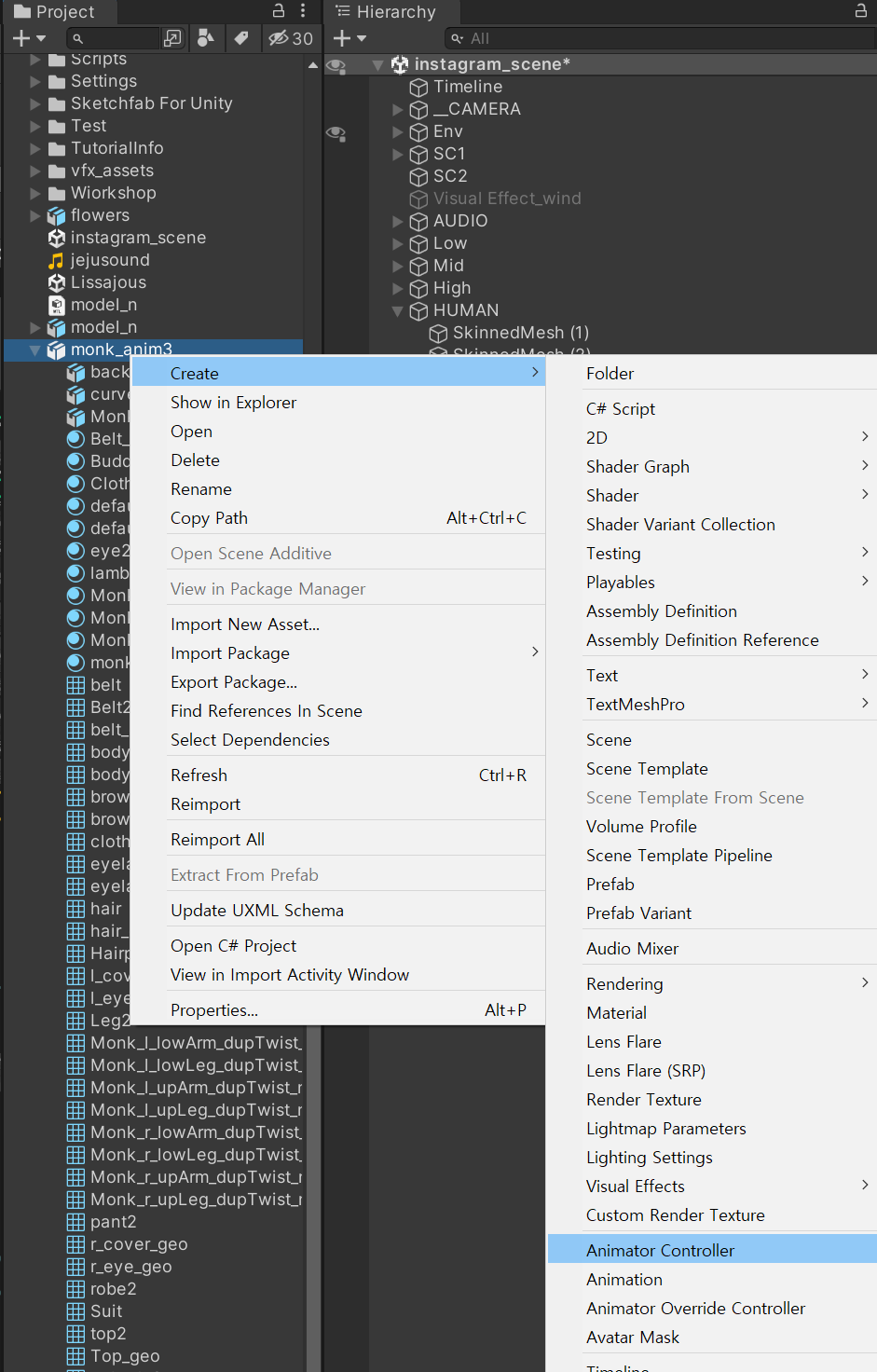 4-0. 애니메이션 컨트롤러 만들기(프로젝트창)