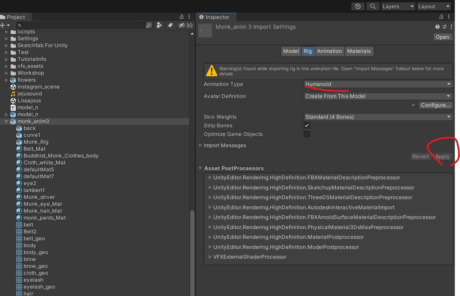 1. skinned mesh 다운로드(프로젝트창에 넣기)