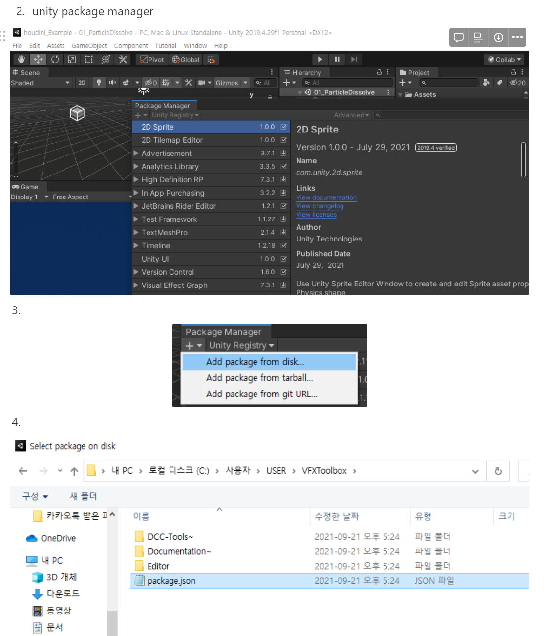유니티에 후디니를 위한 패키지 설치@@@@@