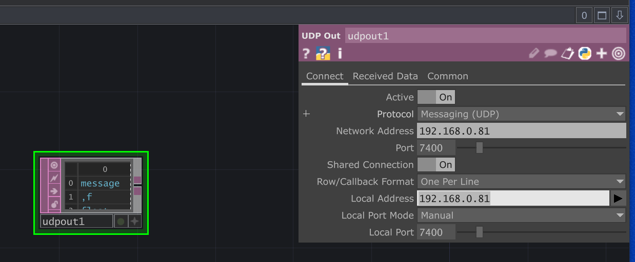 op('udpout1').send(a)