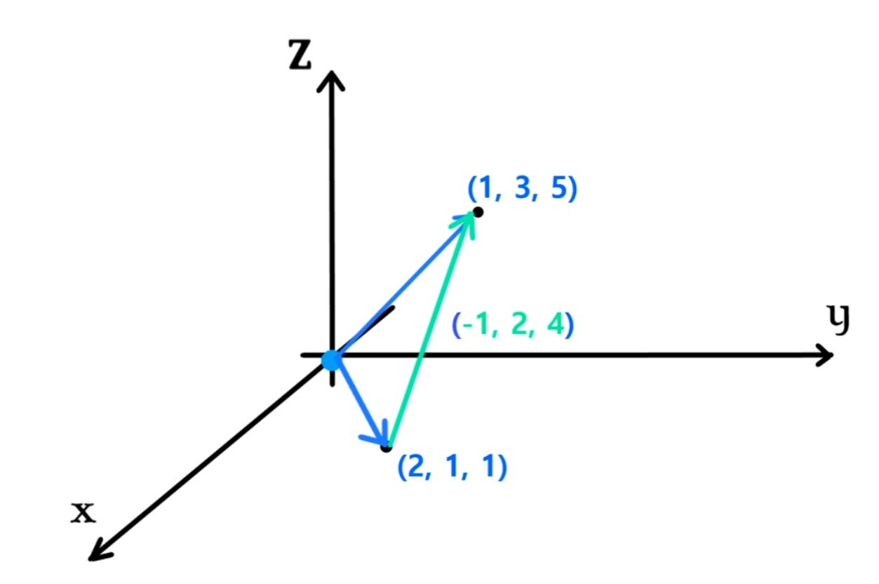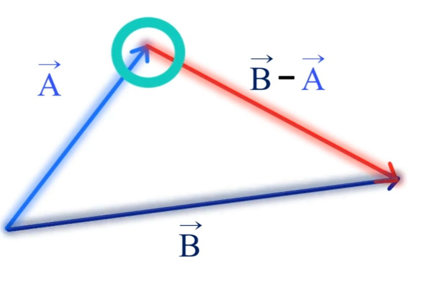 파란 A백터와 빨간 B-A 백터의 합은 => B 백터가 된다.