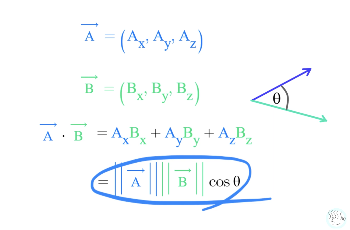 두 벡터의 내적은 두벡터의 크기 곱하기 코사인 세타니까.