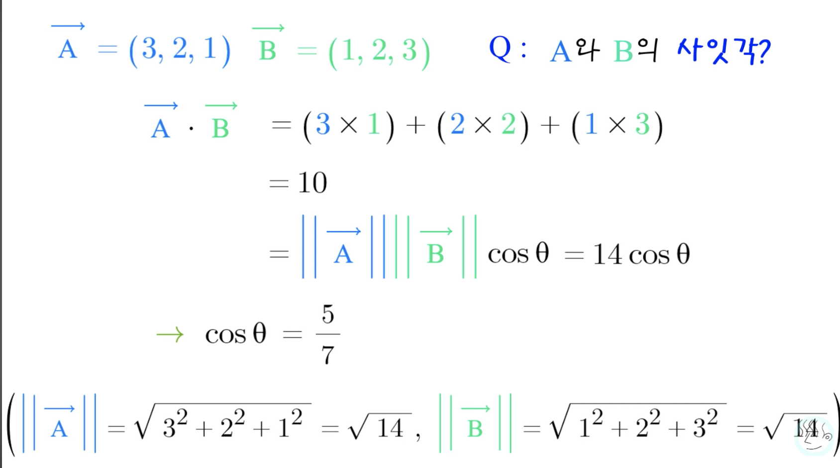 cos세타의 값을 알 수 있다. 사잇각이라한다.