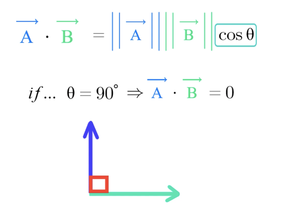 사잇각이 90인경우 내적은 0 이고 내적 값이 0이면 사잇각이 90이다.