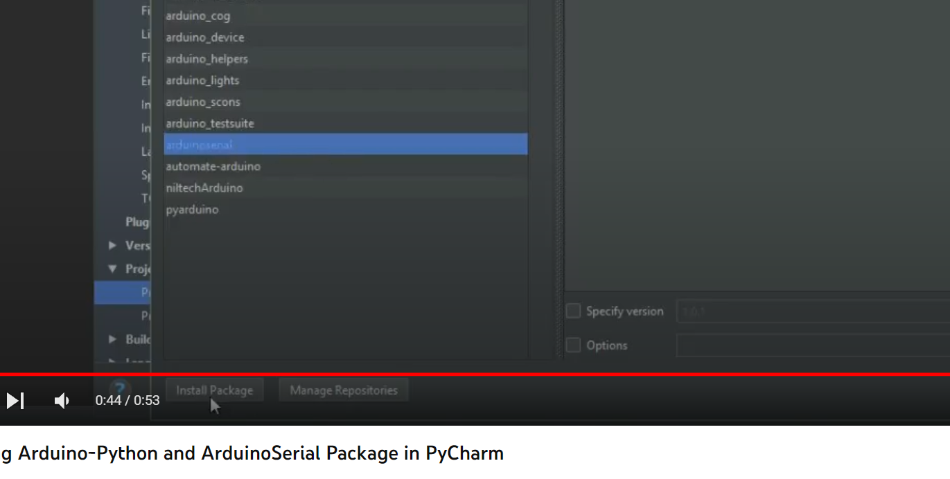 3. 아두이노 파이썬 : 인스톨 패키지 + 아두이노 시리얼 : 인스톨 패키지