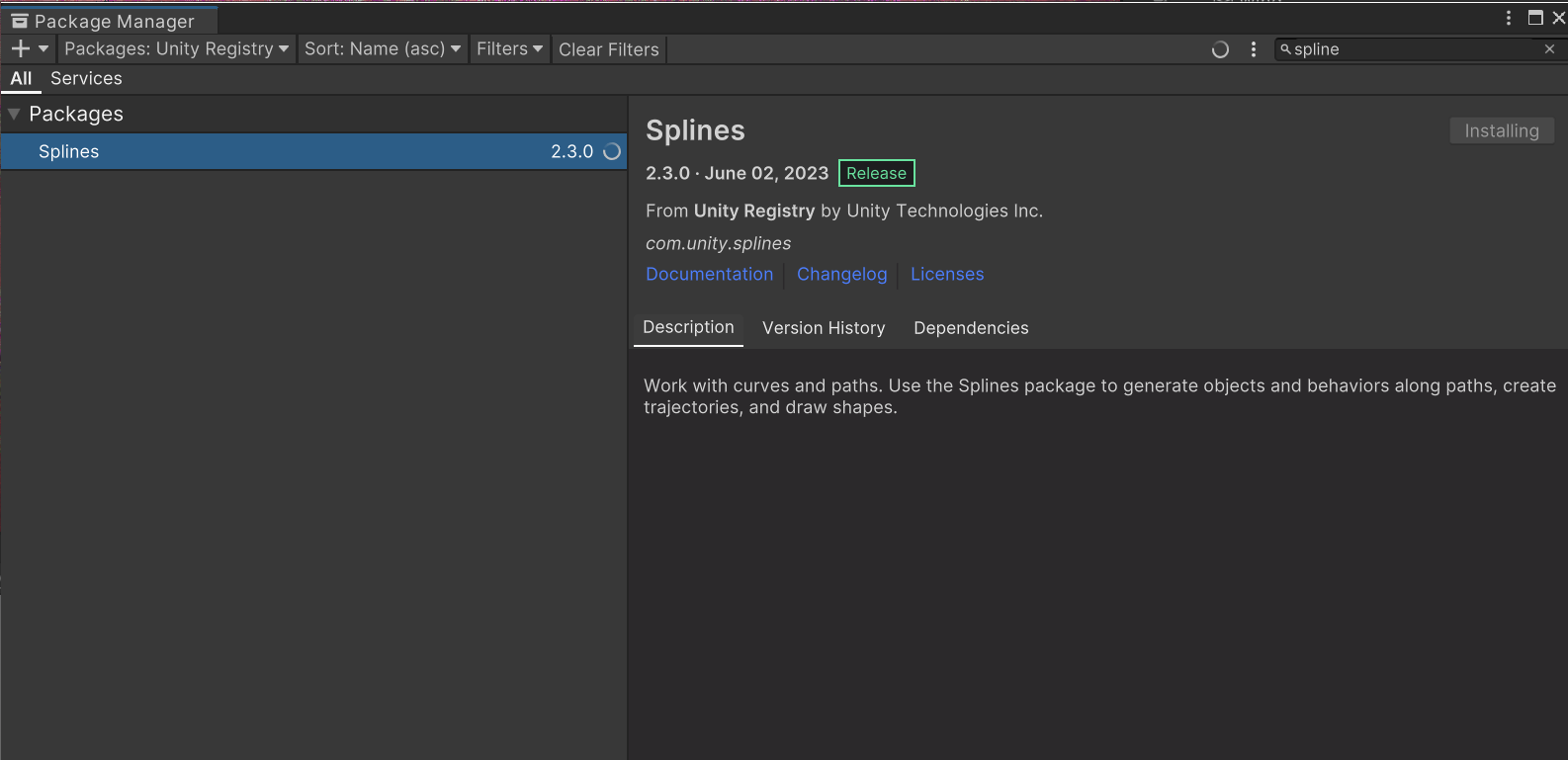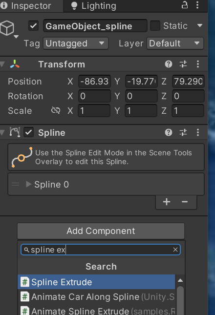 c. 오류뜬다. spline에 spline이 포함된 빈 게임오브젝트 끌어다 넣어주면 오류 사라짐