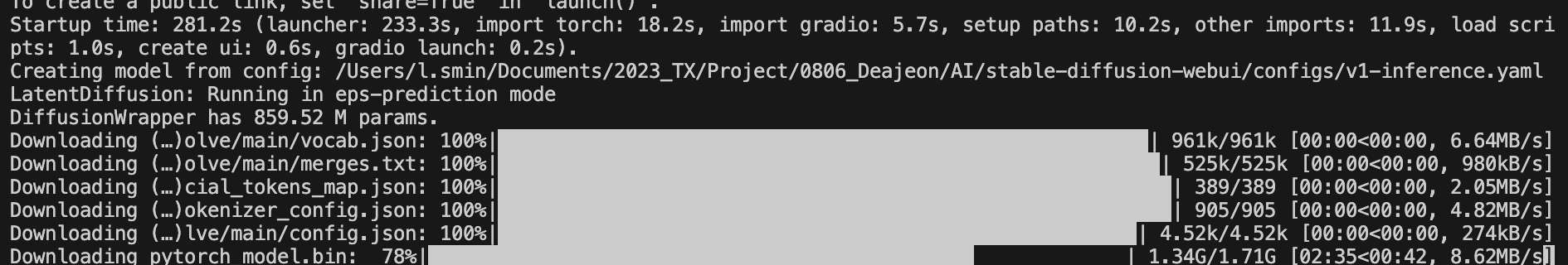 4. 또 설치 .. stable diffusionㅡ (이게 제일 어려움 ! * 오래 걸림 주의 * )