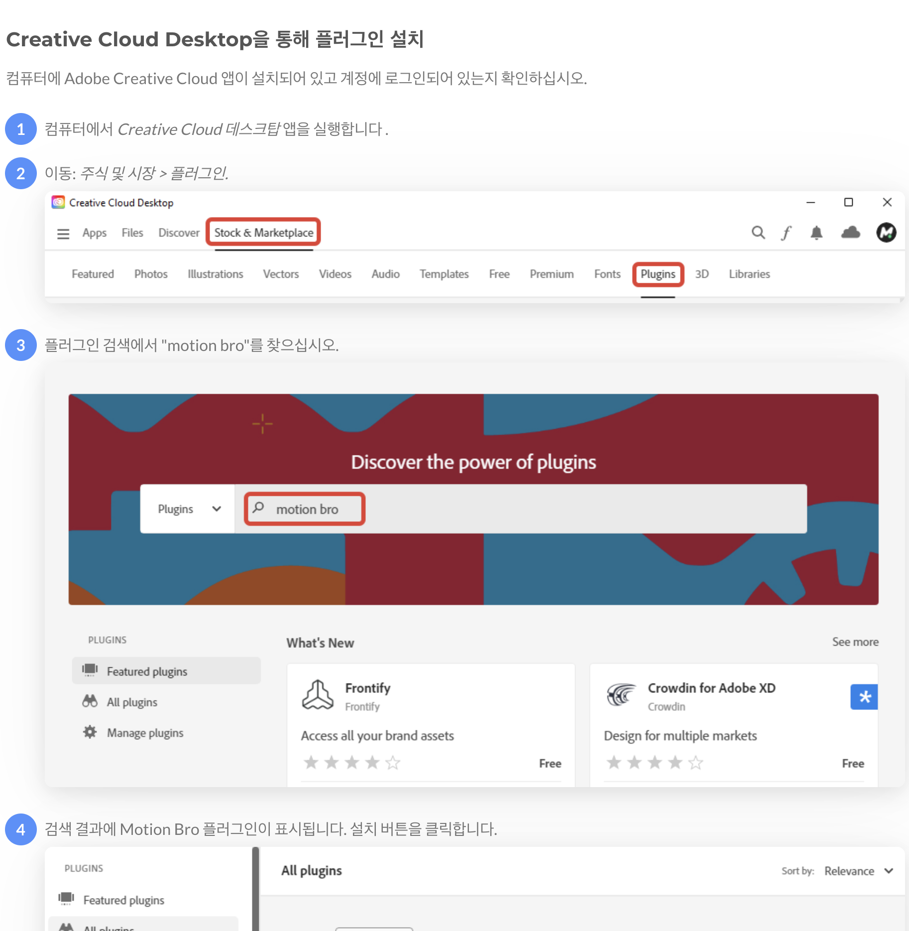 To work with the Motion Bro plugin, you must have After Effects or Premiere Pro software installed on your computer. You can install the Motion Bro plugin through Creative Cloud Desktop App or manually. You can install any plugin for Adobe applications usi