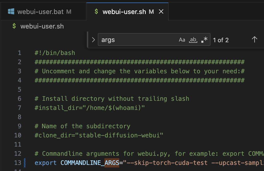 code에서 stable-diffusion-webui 폴더 열고 아래 명령어를 실행!!!