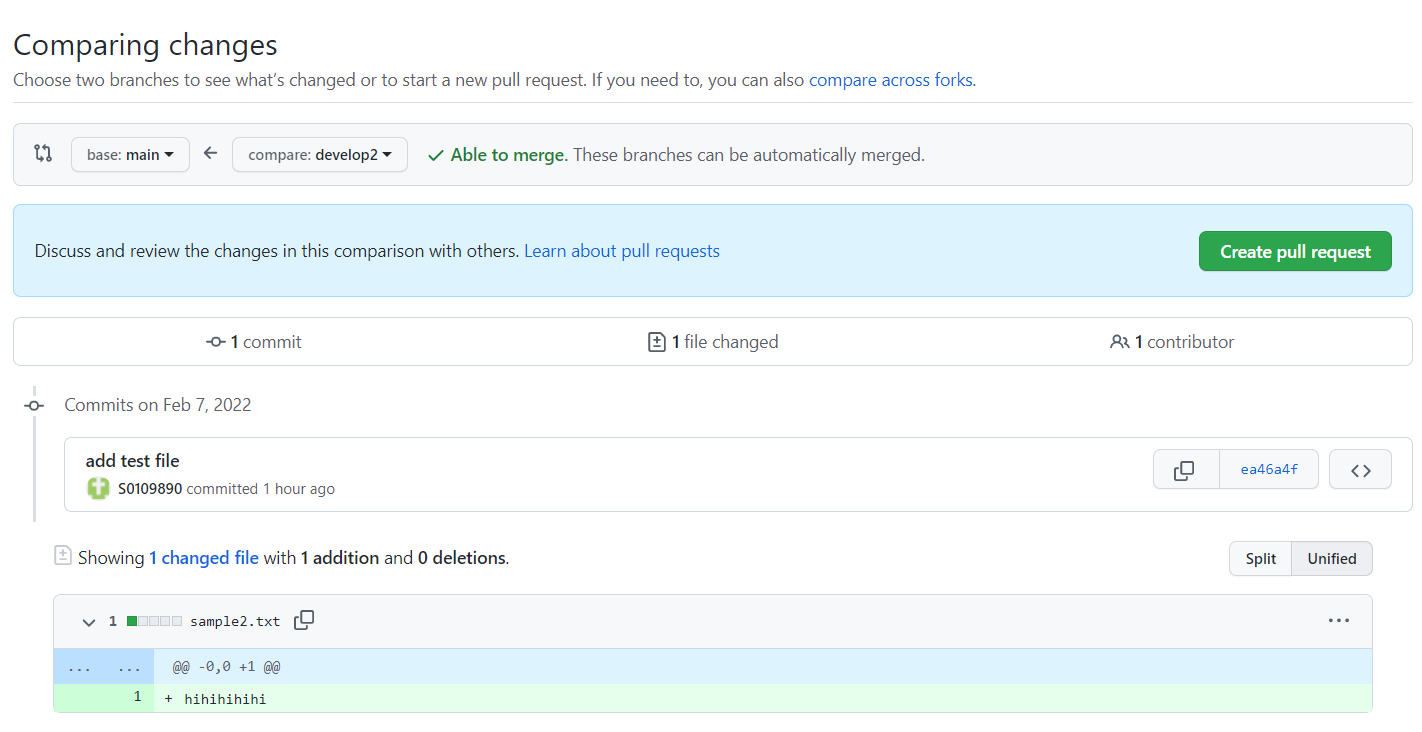 : 브랜치에 파일을 생성하고 변경사항을 add 하여 커밋 -> 푸시해 본다.