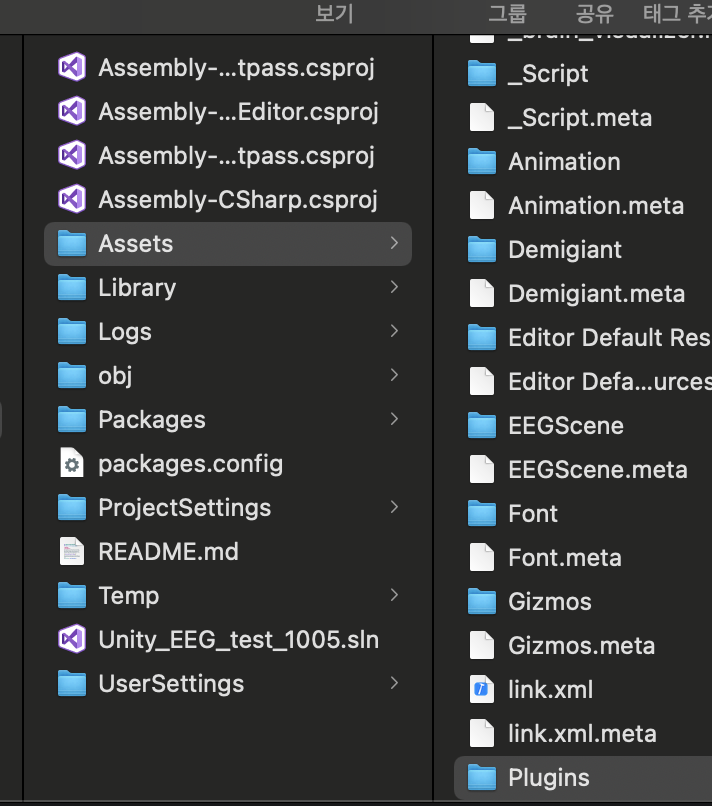 유니티 프로젝트 파일 / 에셋 /Plugins 에 붙여넣는다. 이름 중요.