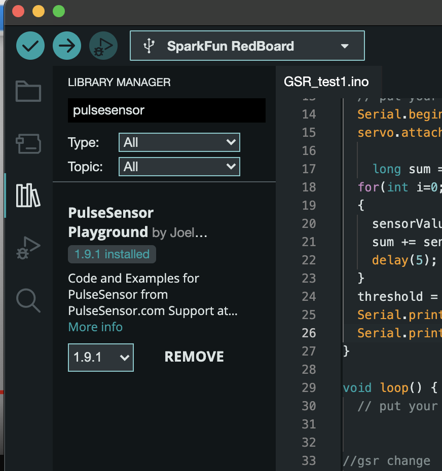 And here’s the code I’ve used with the Buzzer, they have another one in examples, but I modified mine, don’t forget to watch the tutorial video in case you want to know why it’s difficult to measure my heart beat by this dodgy version.