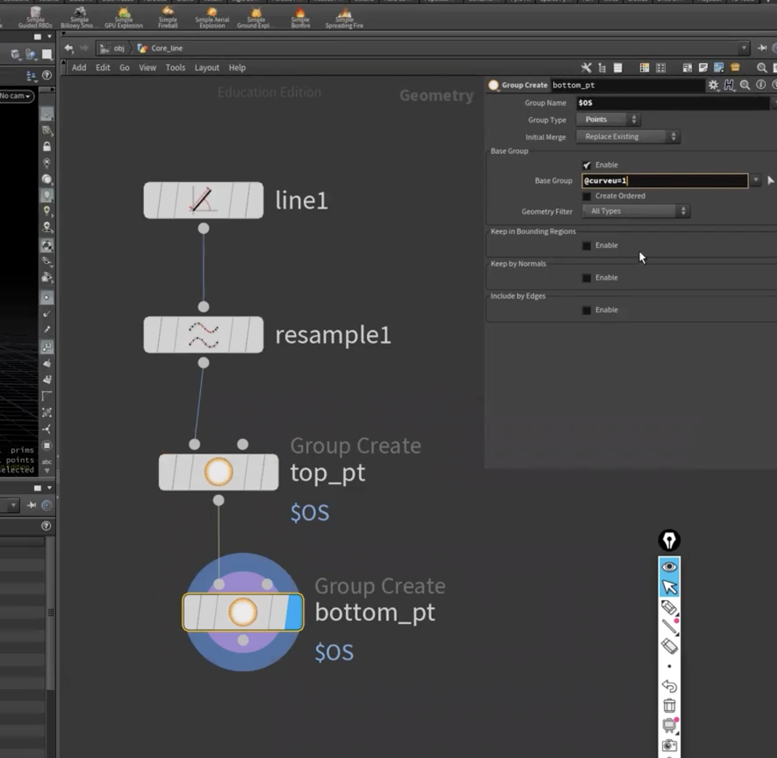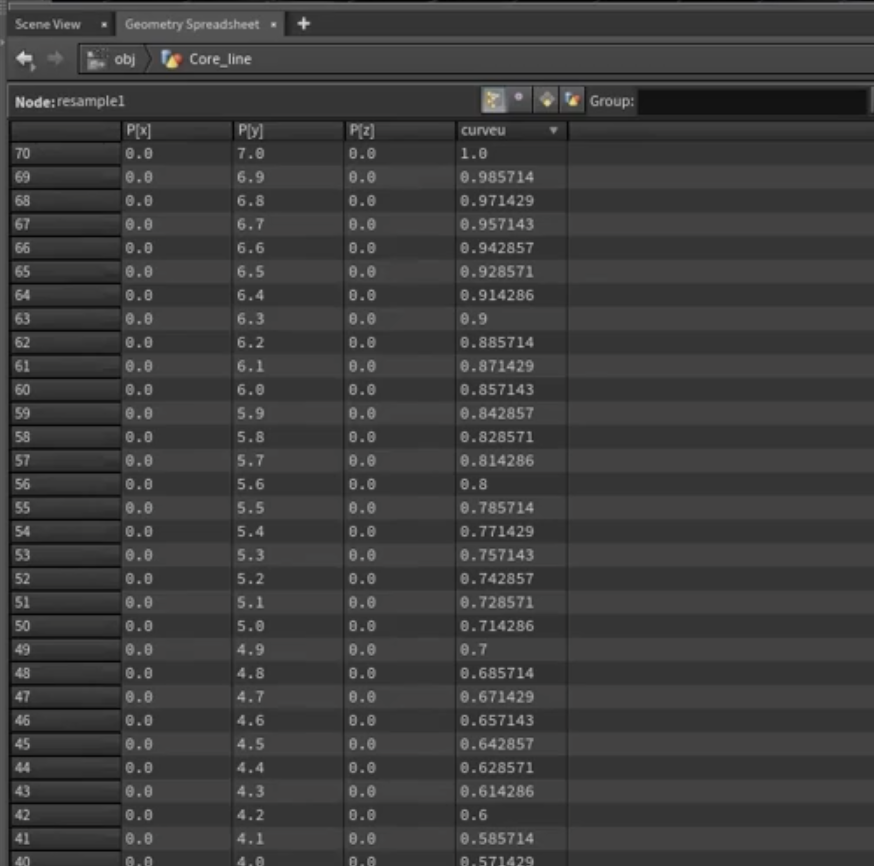 그룹 몇으로 지정할 수 있는지 geometry spreadsheet를 보고 그룹 지정할 수 있다. curveu =0 ,1 end point와 start point 두 그룹으로 만들었다. 그룹은 . 노드 이름과 그룹명을 헷갈리지 말자. 그룹이름이 os