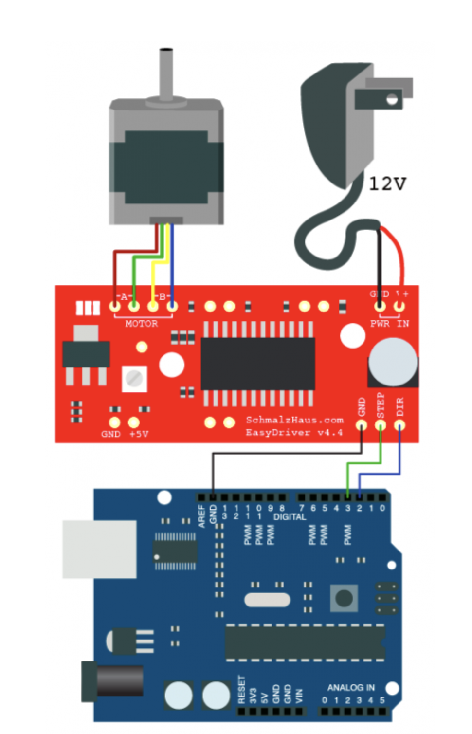 Arduino Uno 로 A3967 Easy Driver 를 사용해서 2상 4선 바이폴라 스테핑모터 제어해 보기