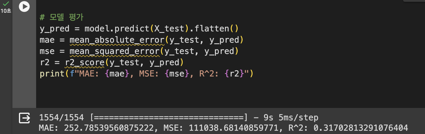 print(f"MAE: {mae}, MSE: {mse}, R^2: {r2}")