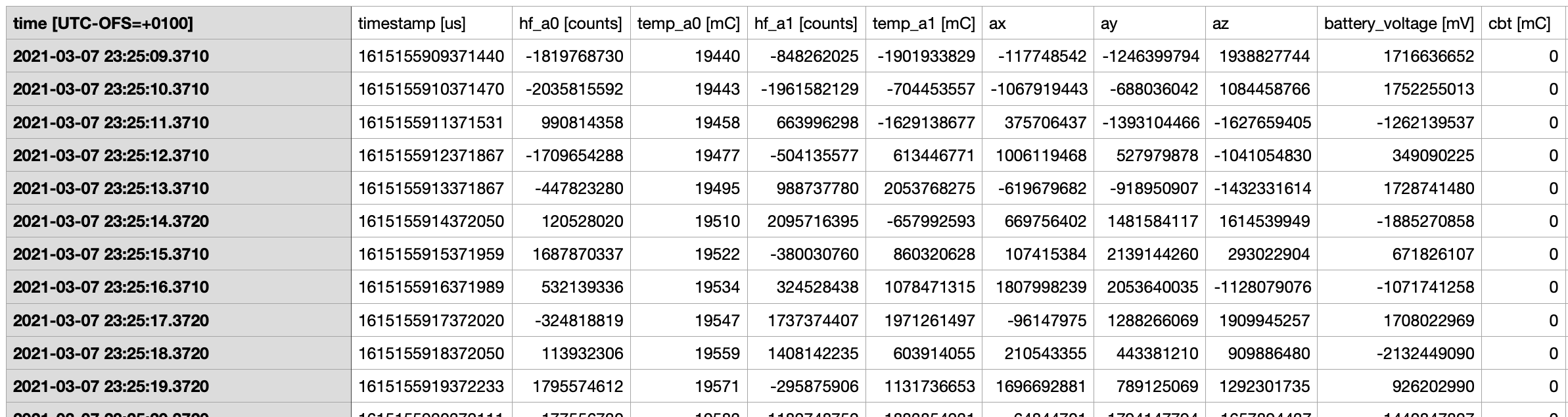 ['time [UTC-OFS=+0100]', 'timestamp [us]', 'hf_a0 [counts]', 'temp_a0 [mC]', 'hf_a1 [counts]', 'temp_a1 [mC]', 'ax', 'ay', 'az', 'battery_voltage [mV]', 'cbt [mC]', '', '', '', '', '', '', '', '', '', '', '', '']