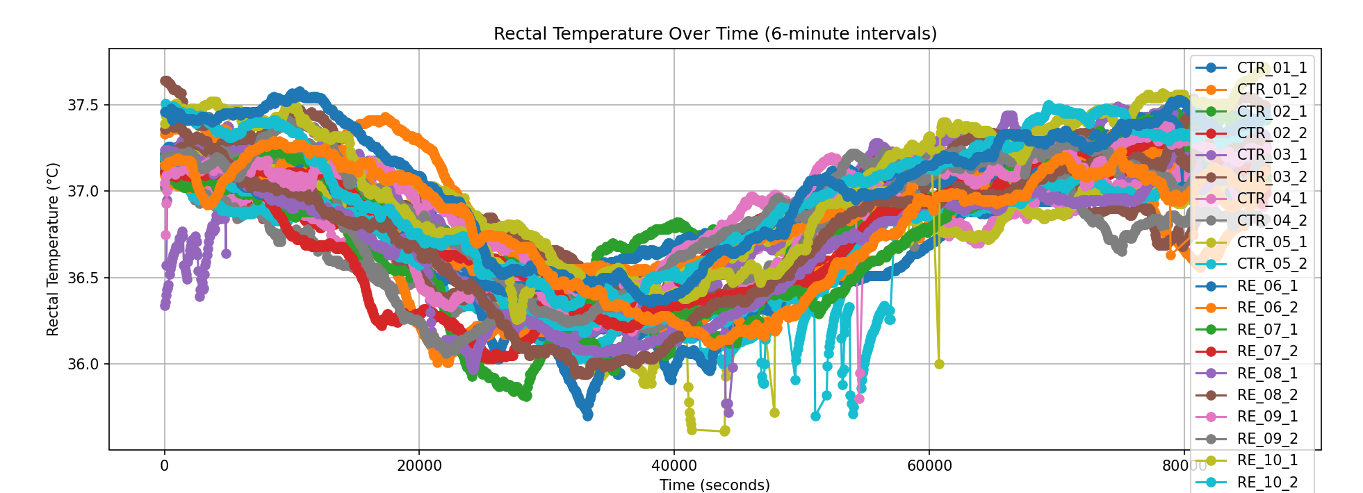 plt.title('Rectal Temperature Over Time (6-minute intervals)')
