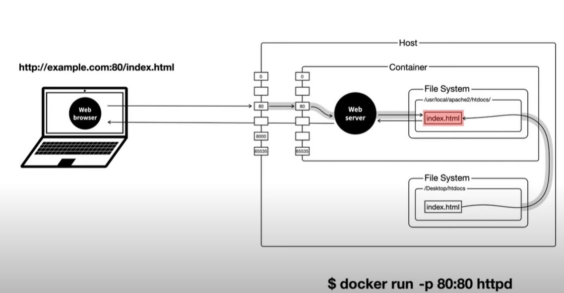 -p 포트 옵션 : 로컬 호스트 8081로 접속할 때 아파치 컨테이너의 80번 포트까지 연결된다