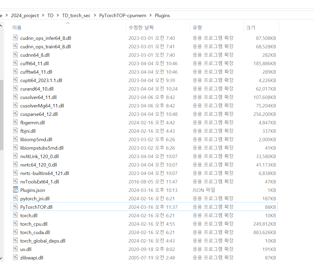 - TouchDesigner 수정: TouchDesigner 설치 디렉터리의 libiomp5md.dll을 LibTorch lib 폴더의 파일로 교체하여 호환성 문제를 해결하세요.