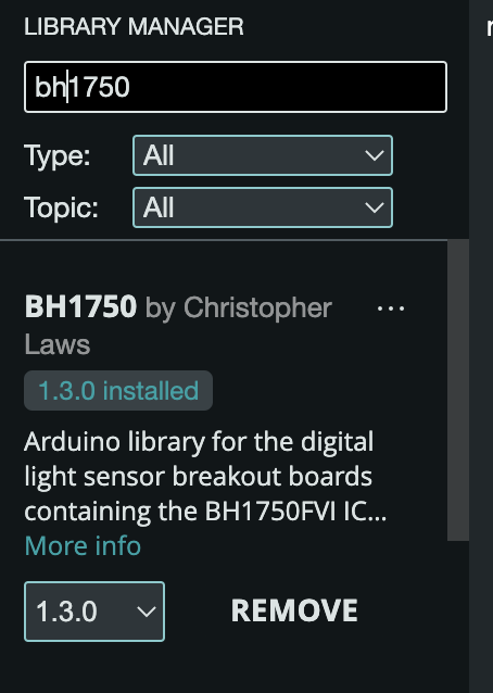 This example initialises the BH1750 object using the default high resolution