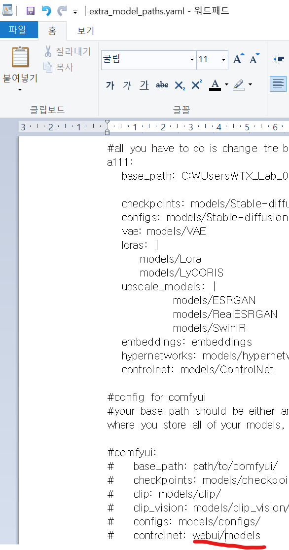 controlnet 경로에 상대경로 . 뒷부분만 입력해준다.