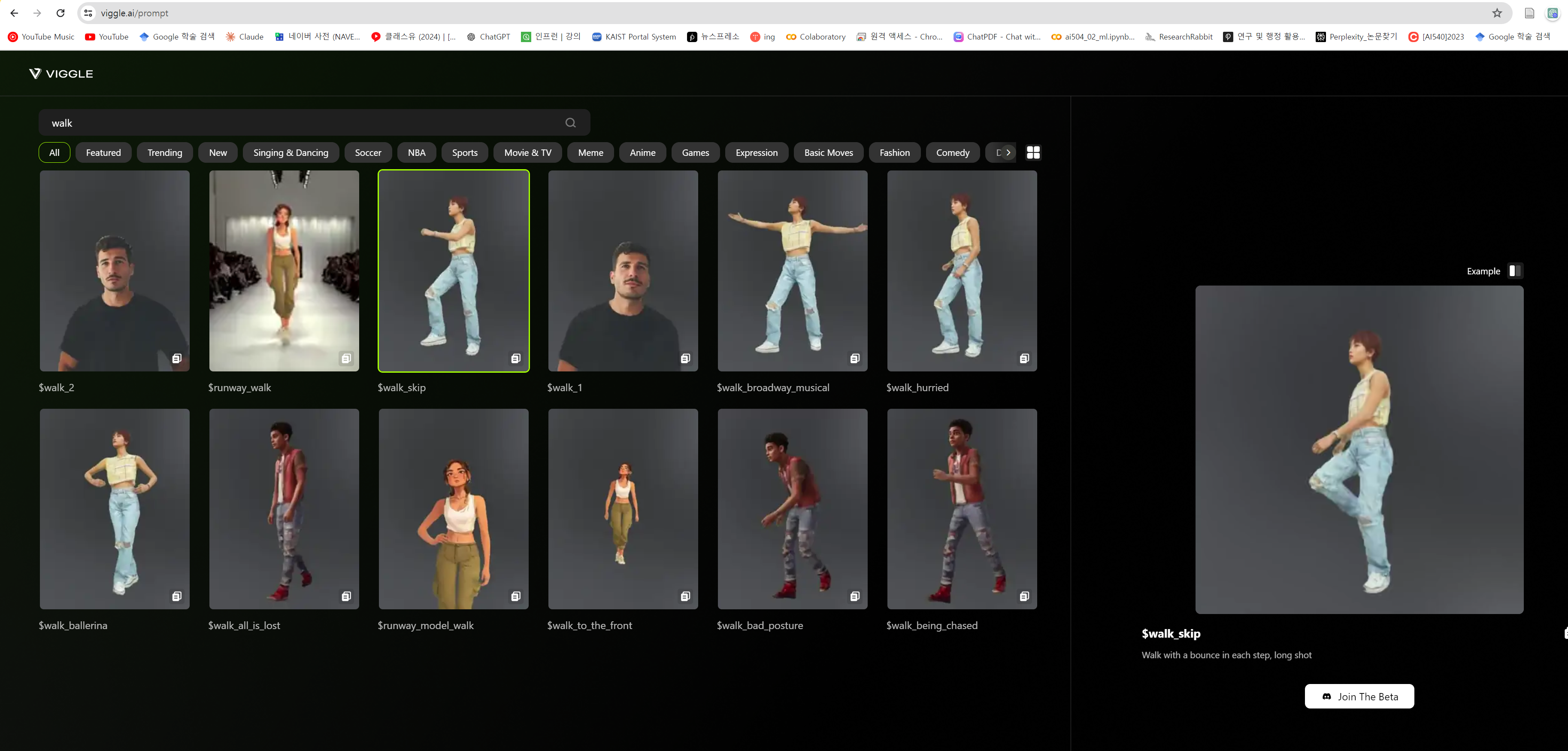 2. 비글에서 제공하는 모션 샘플 . (프롬프트를 복사해서 붙여넣음 된다, 4:40)