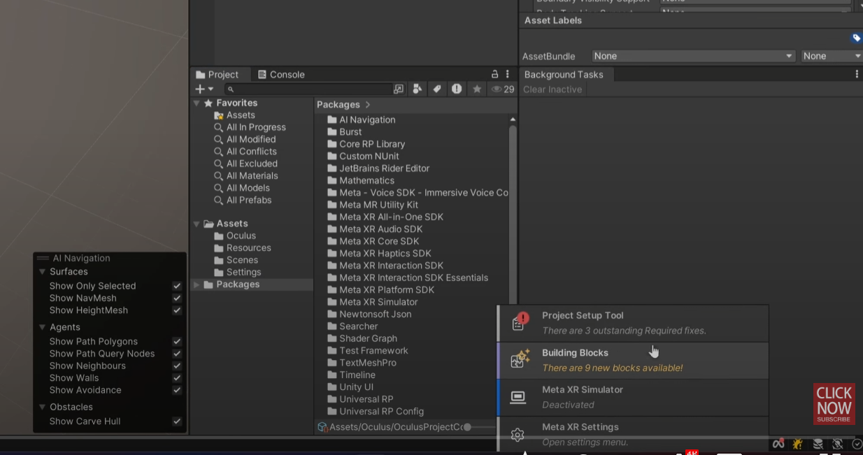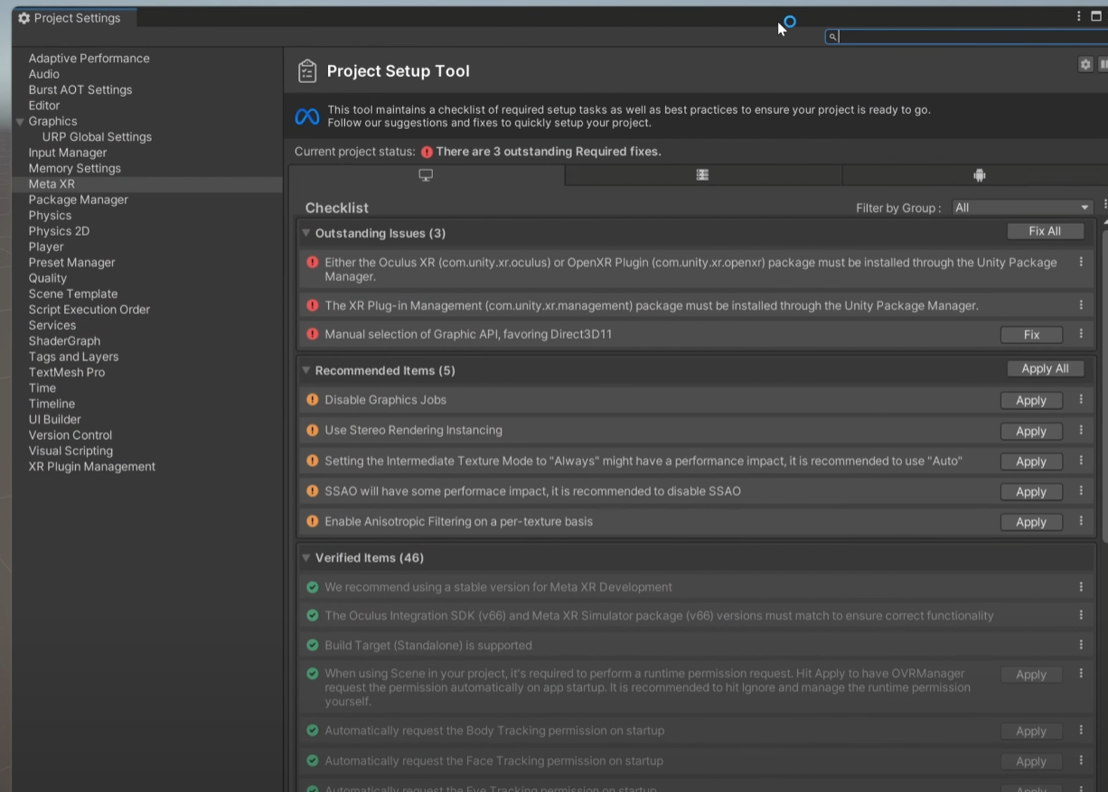 I have a lot of issues with immutable folders in the new Meta SDK packages. I tried different things to but the error keeps coming back in different projects. I first installed Meta Core SDK, I installed 4 building blocks. XR rig, passthrough, controller a