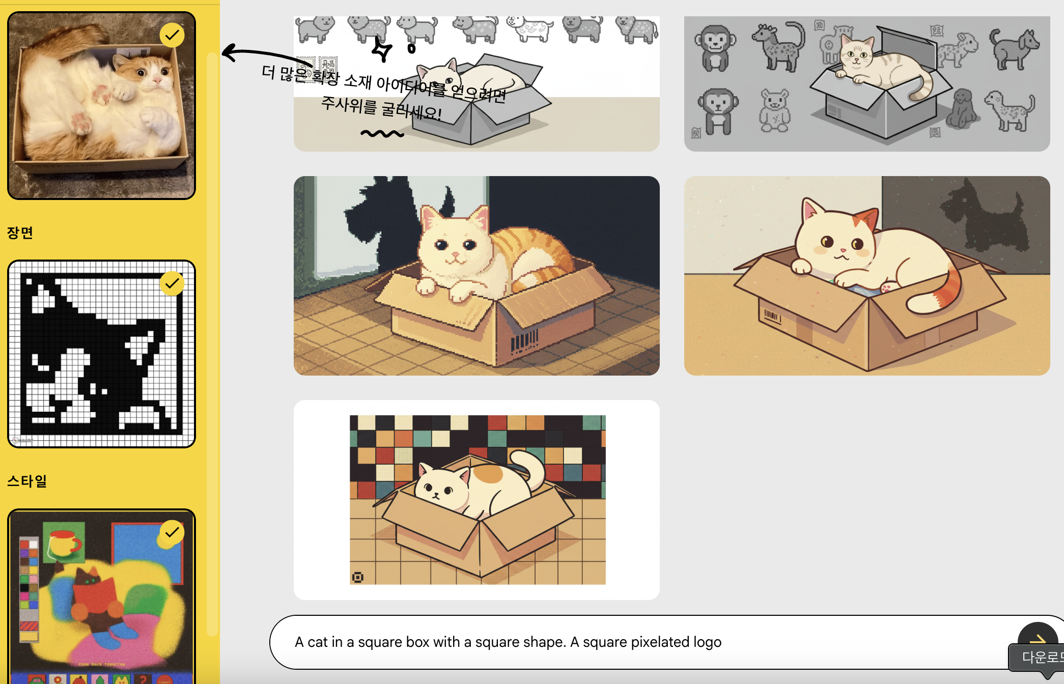Whisk๋ ๊ตฌ๊ธ ์ด๋ฏธ์ง ๊ฒ์์ ํ์ฉํ์ฌ ์๋ก์ด ์ด๋ฏธ์ง๋ฅผ ์์ฑ. ์ง์ ํ ์ฌ์ง์ ๊ฒฐํฉํ์ฌ ์ํ๋ ์ด๋ฏธ์ง ์์ฑ๊ฐ๋ฅ.โ