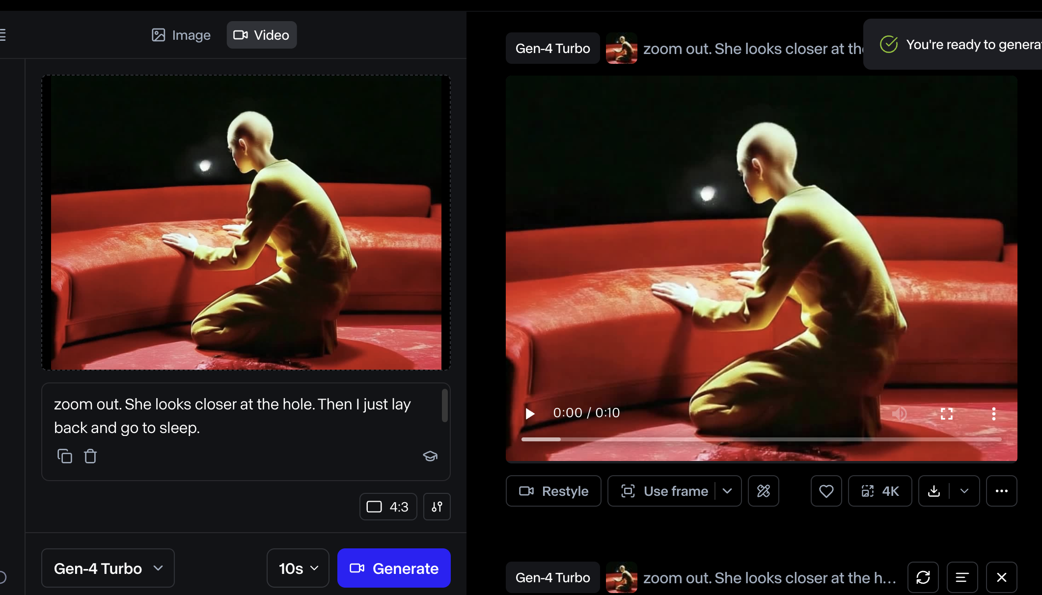 4. img to video 비디오 생성 : Runway (Gen 4 Turbo :무제한 사용중)