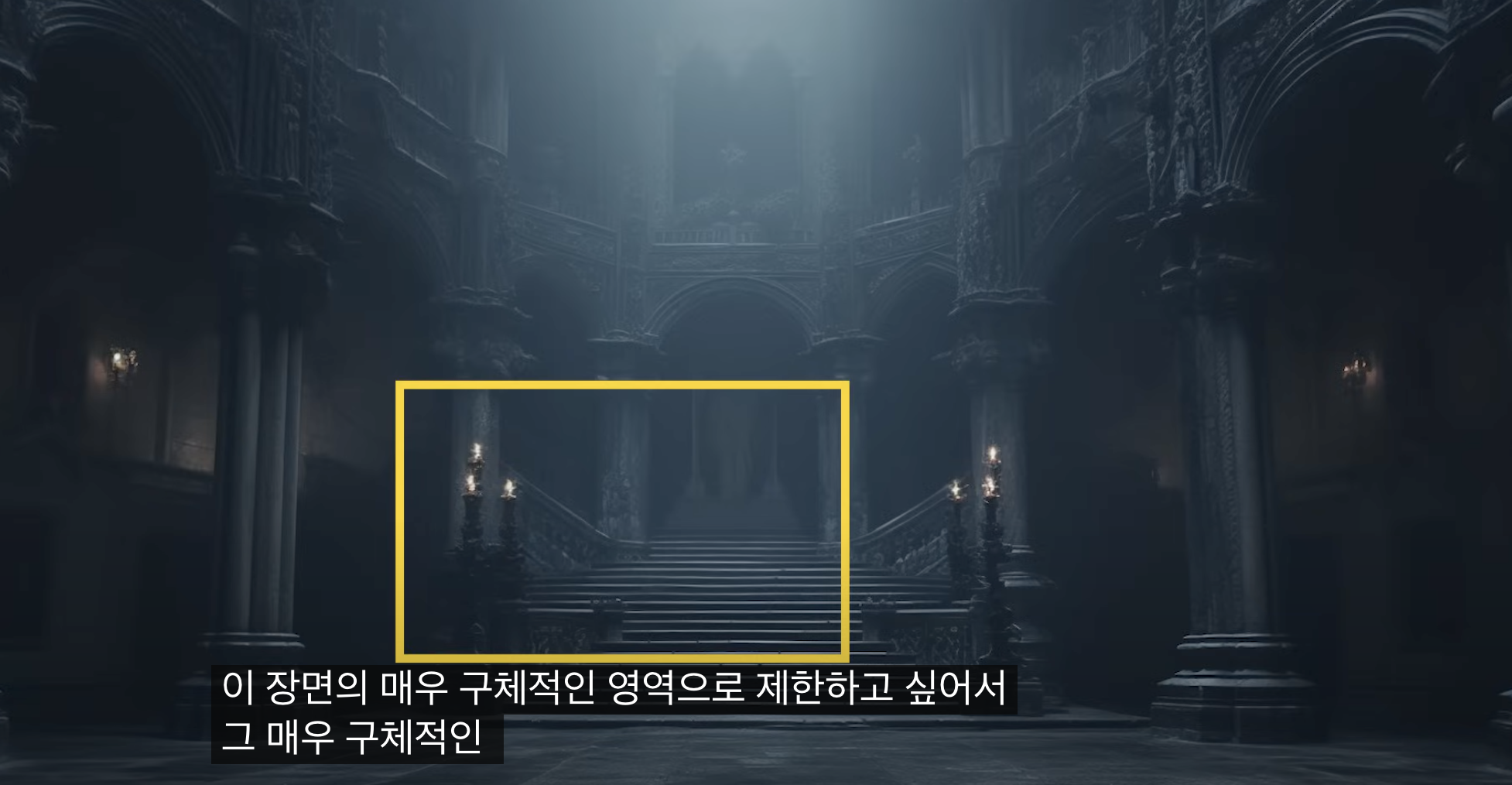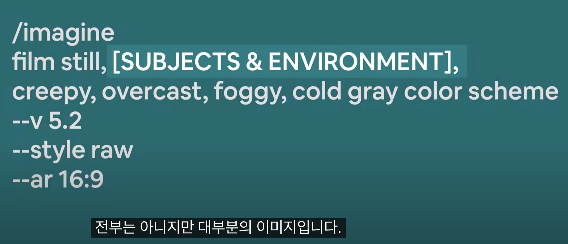 (장소, 카메라 각도, .. 구체적일수록 좋다. 빛 , 라이트 , 렌즈, 화각, 카메라 무빙, 분위기, 감정)