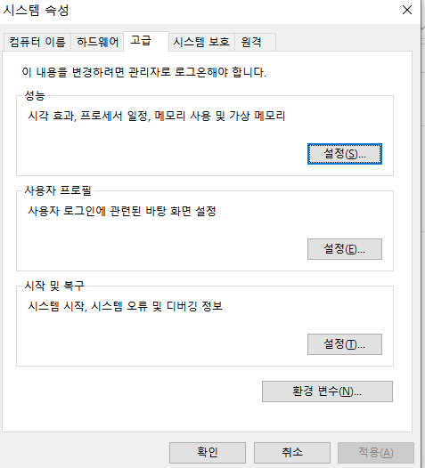 환경변수(in windows)편집 설정