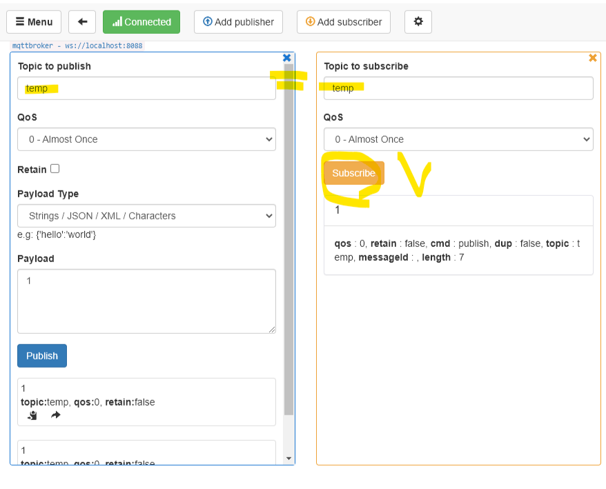 Publisher(센서 장치)가 데이터를 브로커에게 전달한다면 각 Subscriber(출력장치 또는 처리 장치)에서 데이터를 받아올 수 있습니다.