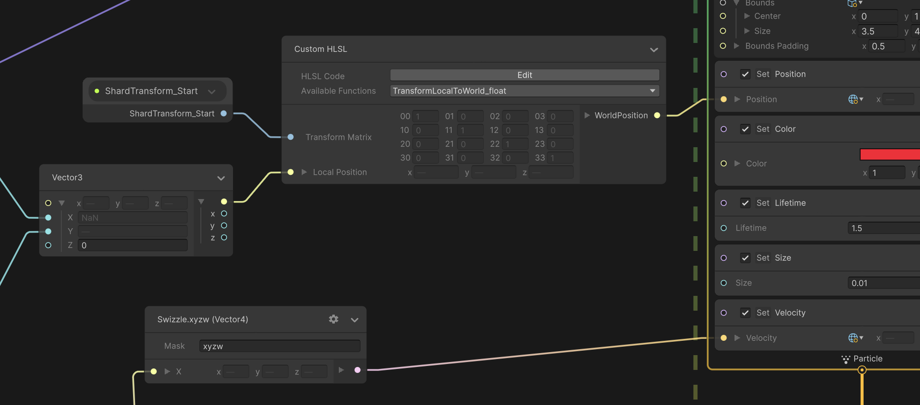 - VFX Graph 에셋: C# 스크립트로부터 받은 데이터를 바탕으로, 수만 개의 파티클(선)을 화면에 실제로 그려내는 아티스트 역할을 합니다.