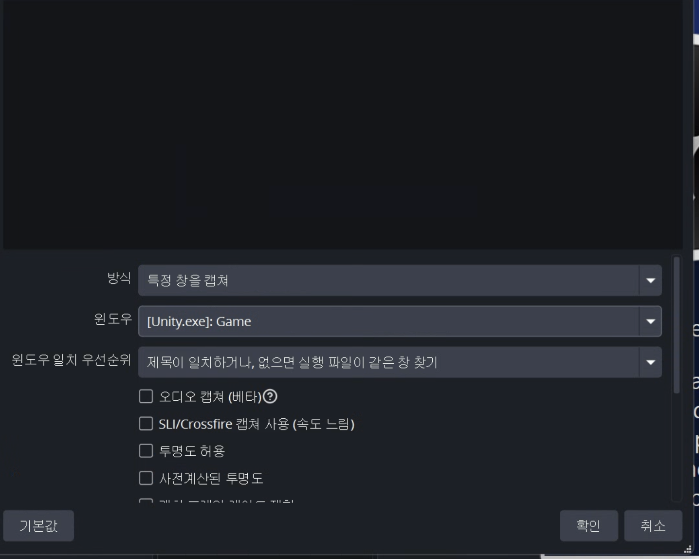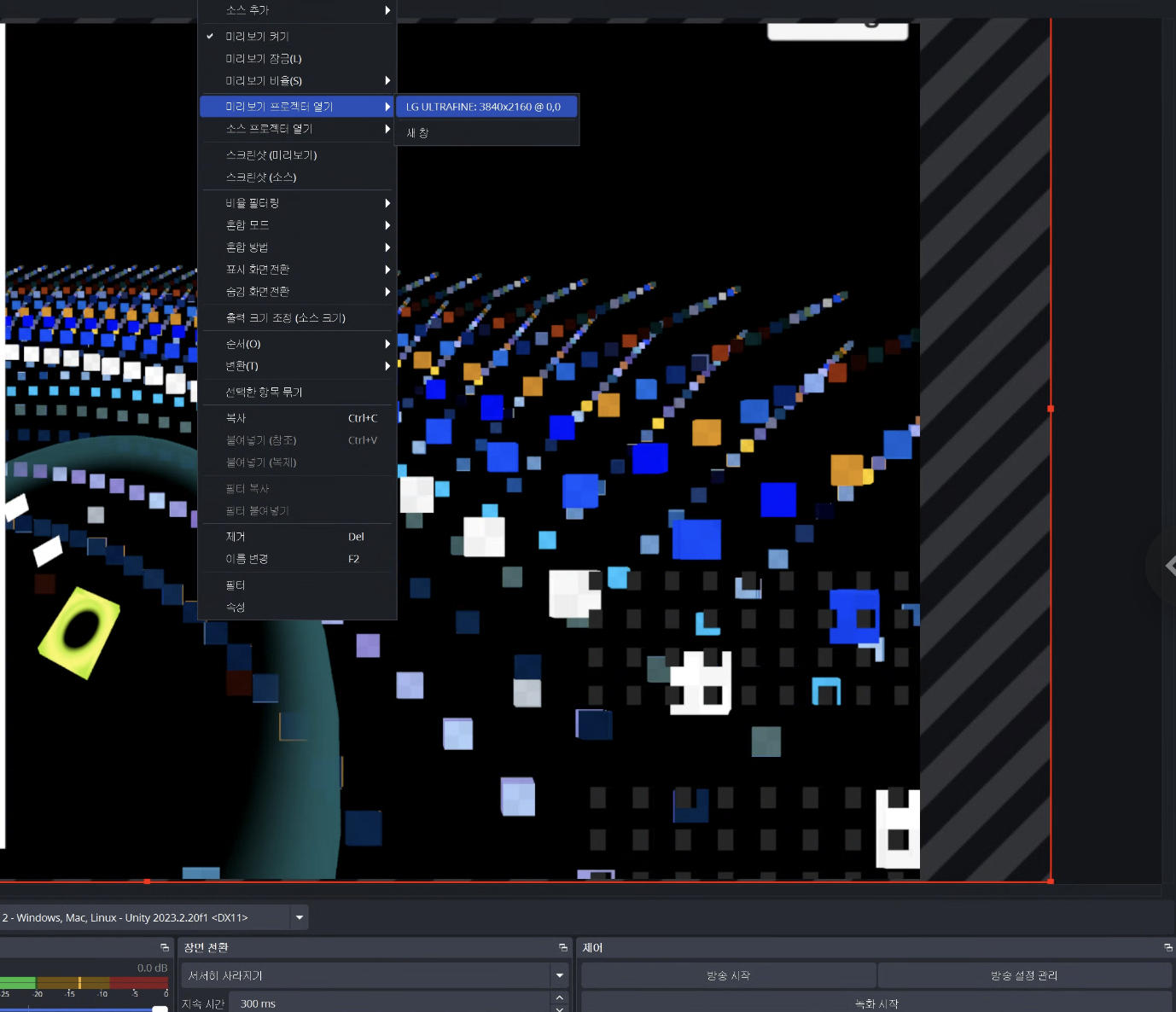 2. 다음문제 : 유니티 fullscreen 전체화면 하나만 가능 >> 2번째 게임 창은 OBS Studio 활용 풀스크린으로 보여주기
