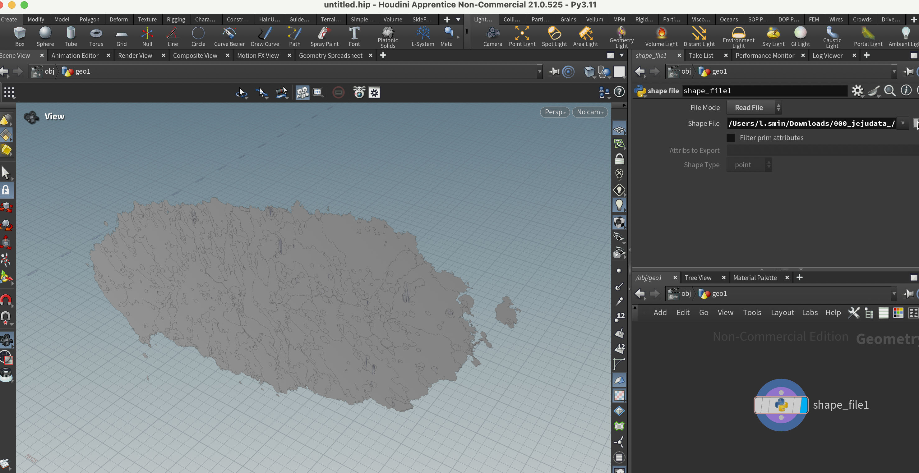 이 파일 쓰면,후디니에서 .shp 파일 불러올수있다.