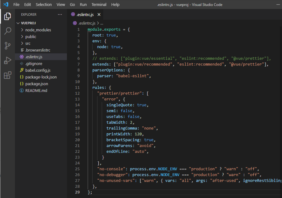 eslint 환경설정 파일을 다음과 같이 설정한다.****