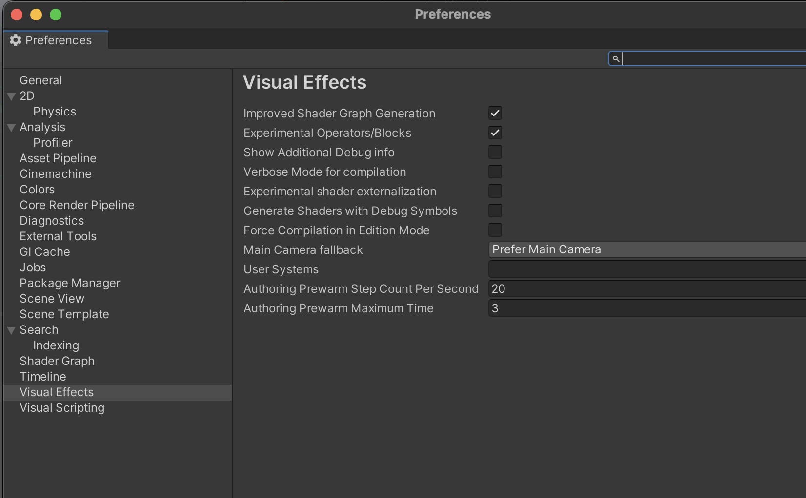 준비 1. visual Effects ( 유니티 프리퍼런스, 셋팅에 있음)