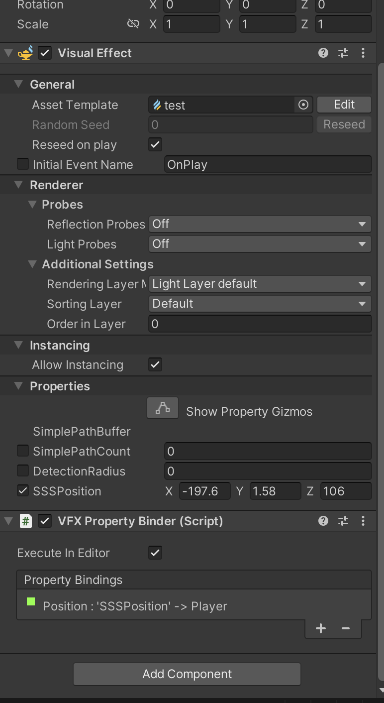 (VFX binder에서 플레이어의 포지션과 연결해주고 변수명을 갖게 설정했기때문에 작동한다) : 위의 단계에서 했던것
