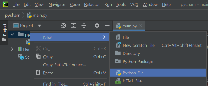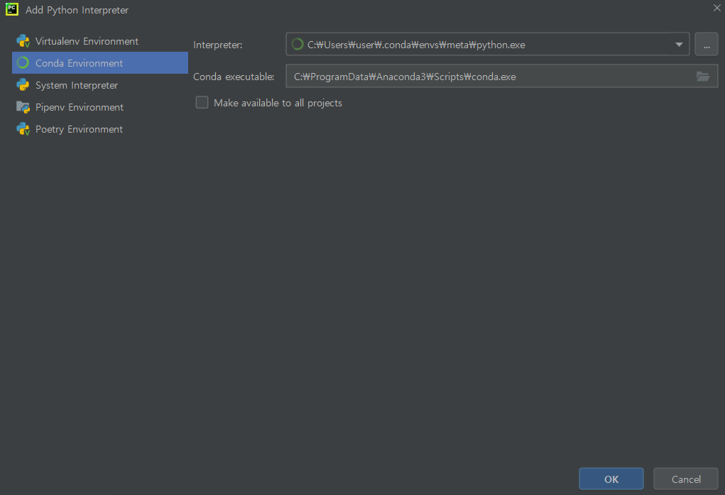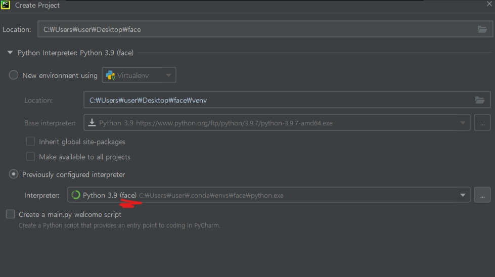 [파이참에서 가상환경 적용]