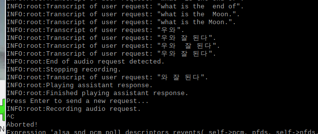 googlesamples-assistant-pushtotalk --project-id 본인꺼 --device-model-id 본인꺼