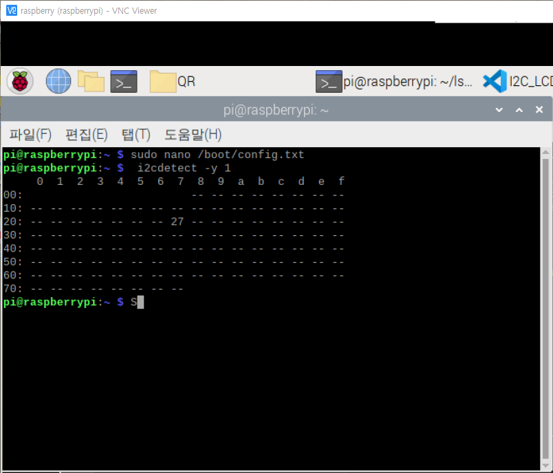 라즈베리파이3 B+아두이노 I2C 1602 LCD 모듈 \[SZH-EK101]브레드보드, 케이블VSCode로 했음.python3 설치I2C Enable 설정3 Interface Options > P5 I2C > Enable 할거냐고 물어보면 YES!smbus 설치i2c
